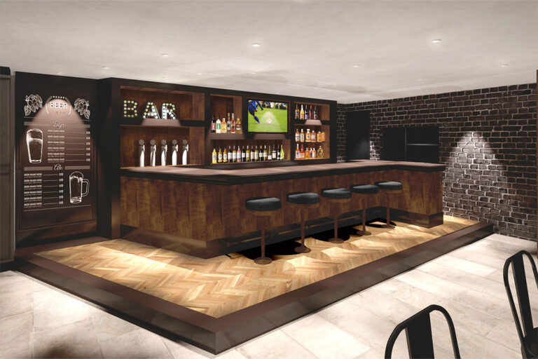 知人の紹介で、産業廃棄物業の会社様からお話をいただきました。その会社のご子息がスポーツ観戦をしながらお酒を楽しむことが好きで、そのような楽しみを体験できる空間を作ることができるよう、物件を探すところからこのプロジェクトのスタートとなりました。